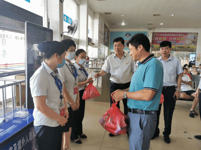8月20日,長運股份副總經(jīng)理占梁在鷹潭長運、鷹潭公交董事長湯勝輝,鷹潭長運總經(jīng)理邵世界的陪同下為奮戰(zhàn)在一線